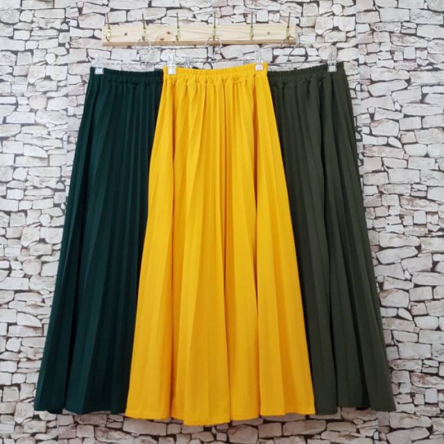 Chat untuk kepastian stock// pleated skirt ✨premium crepe material ✨full elastic waist ✨elastic waistband ✨free size.